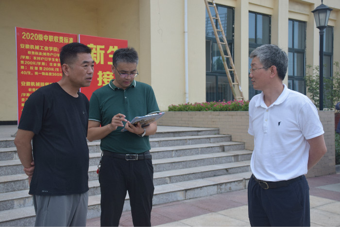 徐黎校长一行一边检查一边交换意见。徐校长指出:开学报到工作牵动人心,学校准备工作不容有任何闪失,学院要认真落实上级要求,认真对待,一手抓疫情防控,一手抓开学报到准备,并且要把校园疫情防控放在首位,把各项工作做全、做实、做细,筑牢校园健康安全防线,为学生和家长营造美丽、安全的校园环境。