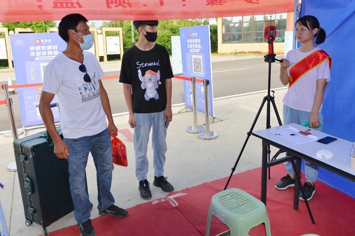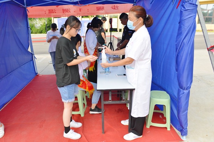 “安全校园迎新”是今年迎新工作的一大特点。新生到校,进校门首先扫安康码、测体温、消毒、洗手、然后报到,整个流程佩戴口罩,保持1米的安全距离。安全规范的操作流程体现出疫情防控常态化管理落地落实。