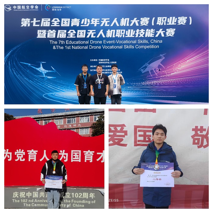 近日,第七届全国青少年无人机大赛暨首届全国无人机职业技能大赛在深圳龙华区文体中心隆重举行。本次大赛由中国航空学会、深圳市龙华区政府主办,深圳市龙华区工业和信息化局、山东步云航空科技有限公司承办。比赛旨在培养高素质无人机职业技能人才,广泛普及航空科技知识。对于此次比赛学校高度重视,经过层层选拔,选派7321无人机班李喜、唐虎两位同学参加比赛。在教师宋超、唐建成的指导下,从全国两百多名选手中脱颖而出,一举夺得两个全国二等奖,因成绩突出,学校获评优秀组织奖。