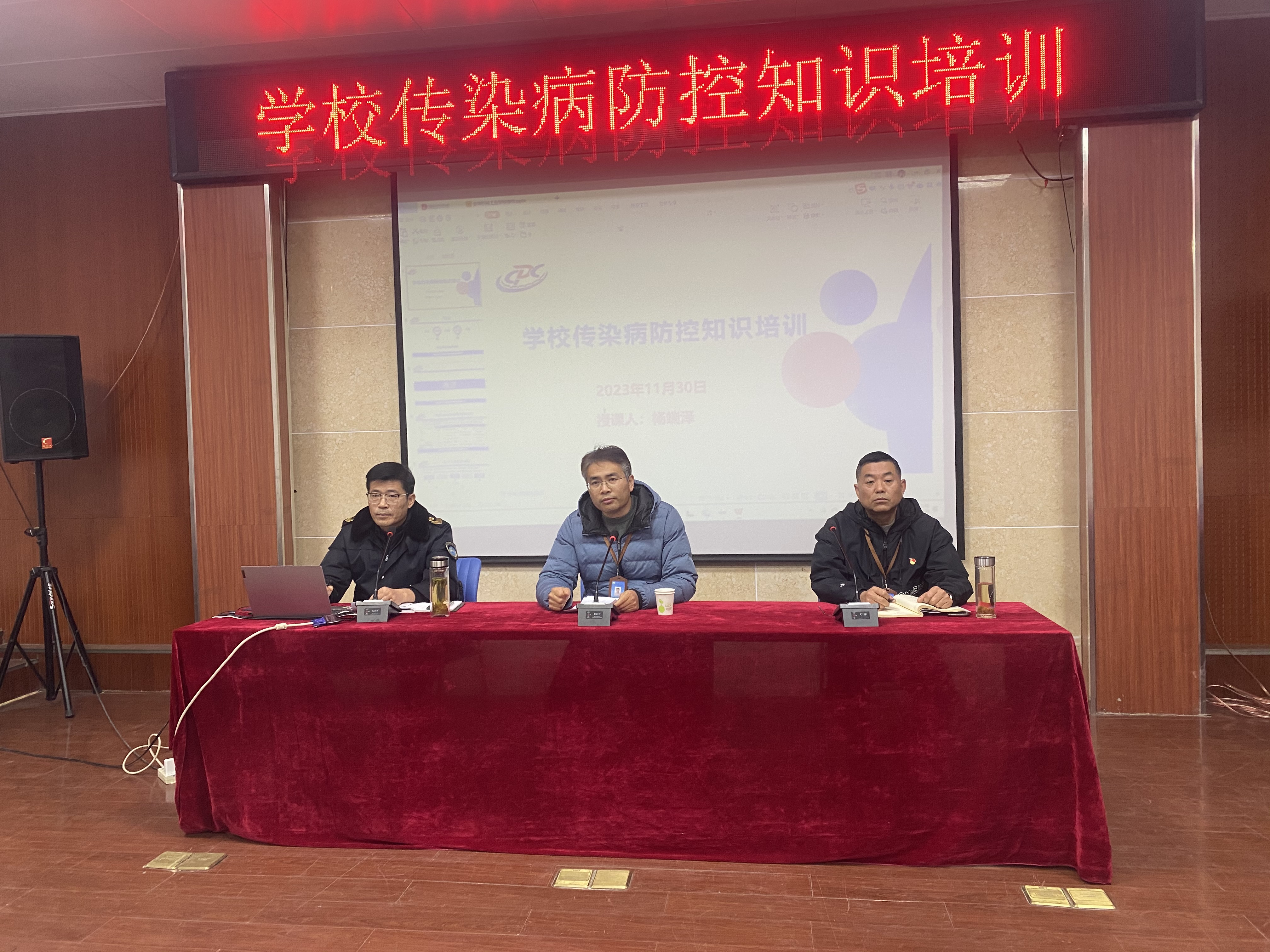 秋冬季是各种流行性传染病多发季节,为了提高广大师生对常见传染病的认知度,帮助师生掌握校园常见传染病的防治知识,增强师生健康意识和防疫能力。11月30日下午,总务处特邀谢区防疫部门专家杨端泽站长在阶梯教室开展了“学校传染病防控知识培训”专题讲座,校党委委员、副校长丁杰,总务处主任张红胜,各班班主任,食管部,各班班长及生活委员参加了培训讲座。