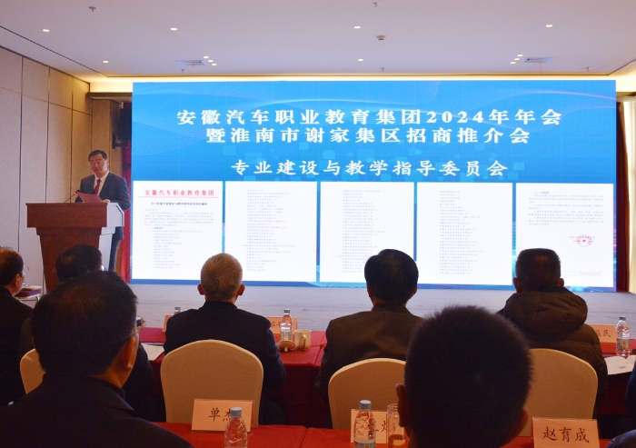 为深入学习贯彻党的二十大和二十届二中、三中全会精神、全国教育大会精神、习近平总书记考察安徽重要讲话精神和省委十一届八次全会精神,在安徽省教育厅职业与成人教育处、安徽省职业与成人教育学会指导下,在淮南市委、市政府的支持下,安徽汽车职业教育集团、谢家集区人民政府共同主办的安徽汽车职业教育集团2024年年会暨谢家集区招商推介会于2024年12月21日在淮南市胜利召开。淮南市委常委、宣传部部长邬平川,淮南市谢家集区人民政府区长陈亚东,省职业与成人教育学会会长李兴旺,安徽职业与成人教育学会副会长朱国苗,安徽省职业与成人教育学会常务副秘书长、中职分会会长方润生,安徽省优秀中等职业学校联盟理事长杨益民,安徽省机械行业联合会执行副会长冯皖东,副理事长单位安徽理工大学继续教育学院(汽车应用技师学院)党委书记王开松,副理事长单位淮南联合大学副校长邓琪,副理事长单位上海博保汽车科技有限公司 董事长、上海博世职业技术学校校长刘勇,理事长单位安徽机械工业学校(安徽机械技师学院)党委书记徐黎等领导出席会议,集团各会员单位共130余位嘉宾参会。安徽机械工业学校(安徽机械技师学院)党委副书记、校长李用俊主持会议。