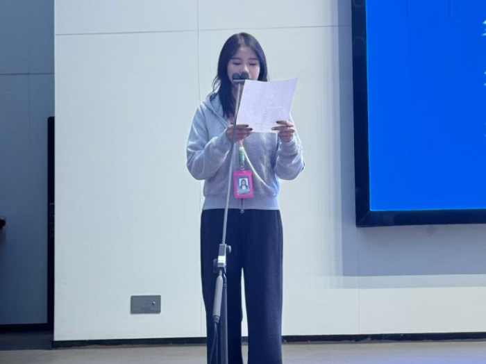 闭幕式上,总裁判长王涵宣读了本届运动会团体成绩,现场掌声为各班级的拼搏成果热烈响起。