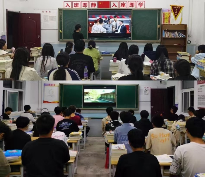 晚自习期间,全体班级组织观看爱国主义题材电影及“爱我国防教育大讲堂”。影片中感人的故事与鲜活的历史瞬间,不仅让学生们深刻了解国防的重要性,也激发了他们的爱国热情。“爱我国防教育大讲堂”通过专业的讲解,让学生们进一步认识到保家卫国的崇高使命,增强了国防意识。