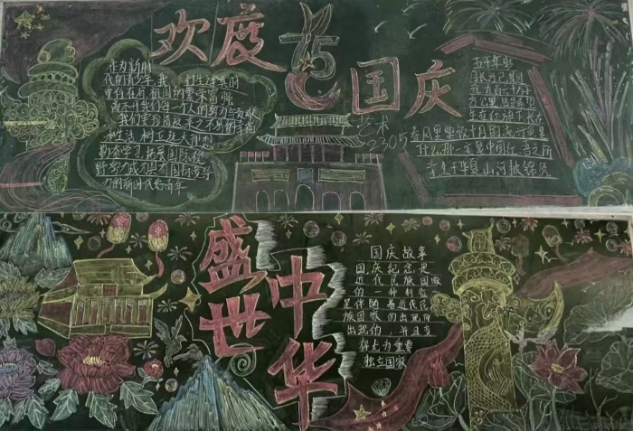 各班以庆祝国庆为题精心制作了黑板报,黑板报的创作不仅展示了同学们的艺术才华,还成为表达爱国情怀的重要载体。