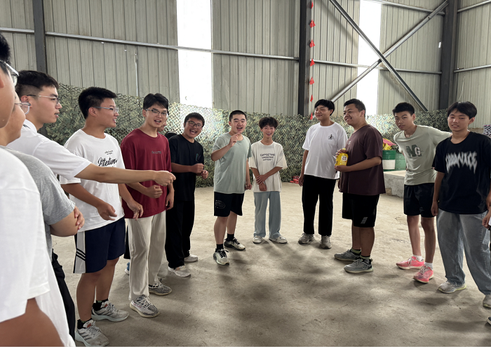 训练过程中,王教授始终与新生们并肩同行。从需要高度默契的活动,到考验策略与执行的游戏;从建立彼此信任的“背对背气球”,到激发团队潜能的趣味游戏,每一个项目都充满了挑战。王教授不仅细致讲解活动要领和安全事项,更在实践中不断为同学们加油鼓劲,引导大家进行总结反思。他时而为同学们的成功欢呼,时而在受挫时给予及时的指点与安慰,其亲切风趣的风格极大地缓解了新生们的紧张情绪,拉近了师生间的距离。同学们在他的感染和带领下,热情高涨,全身心投入。他们从最初的陌生与羞涩,迅速转变成为了共同目标而齐心协力、紧密配合的团队。一次次艰难的尝试,一声声激昂的呐喊,一幕幕相互扶持的画面,构成了操场上一道最动人的风景线。汗水湿透了衣背,但笑容始终洋溢在每个人的脸上。