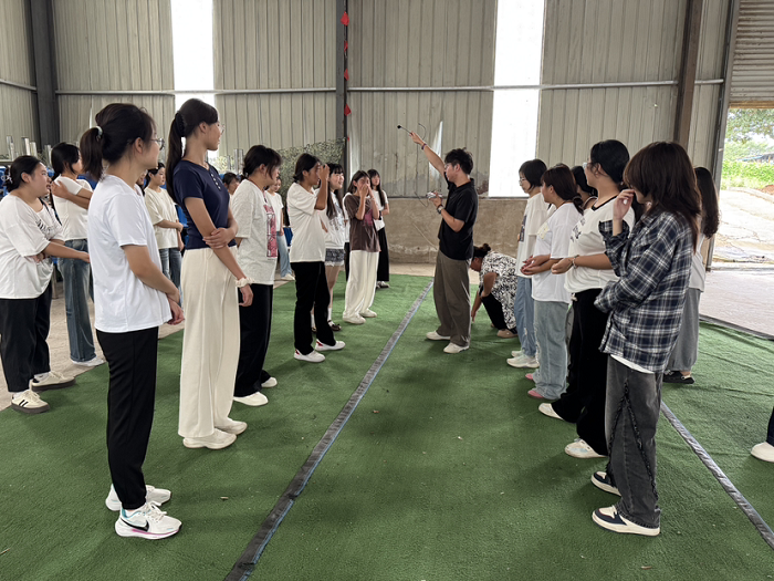 活动当日,阳光明媚,气氛热烈。王教授在开营仪式上作了简短而有力的动员。强调了学生综合素质培养的重要性,指出拓展训练不仅是体能的锻炼,更是对意志、沟通、信任与领导力的全面考验。鼓励同学们放下拘谨、全情投入、互帮互助,在活动中深刻感悟团队精神的真谛,为即将开启的校园生活奠定坚实的基础。