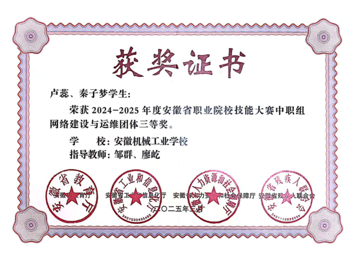 系部坚持“以赛促教、以赛促学、以赛促练”,全面构建师生技能竞赛培育体系,“十四五”期间,学生累计获得省(市)级职业院校技能大赛奖项7项,其中“软件测试”赛项获安徽省职业院校技能大赛省级二等奖,“网络建设与运维”赛项获安徽省职业院校技能大赛省级三等奖;“Python程序开发”赛项获淮南市技能大赛市级一等奖,“电子商务运营”赛项获市级二等奖,“短视频制作”“艺术设计”赛项获市级三等奖;在安徽省第三届WPS办公软件应用能力大赛中,3名学生荣获省级优秀奖,充分彰显了系部技能育人的扎实成效。