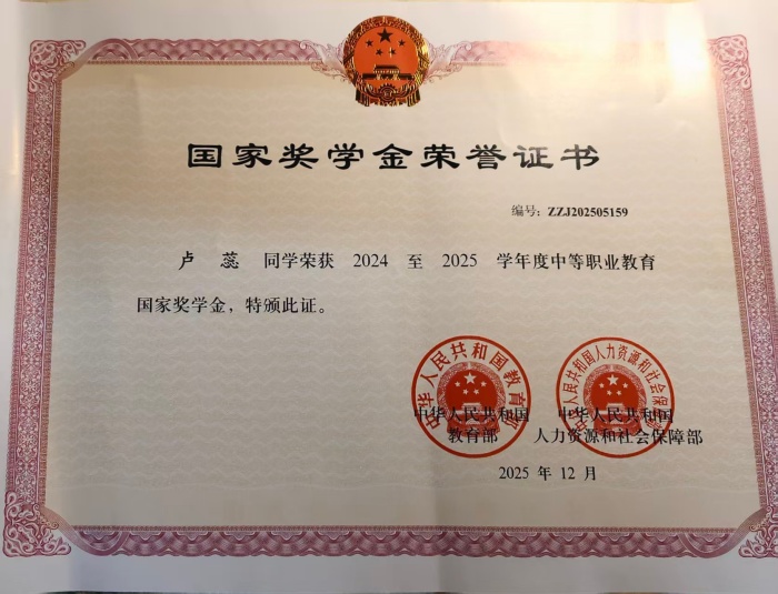 系部全面落实“立德树人”根本任务,构建“三全育人”工作体系,常态化开展主题鲜明的思想政治教育活动,精心打造班团干部先锋队等特色育人载体,着力营造品德优良、崇尚技能、勇于担当、奋发向上的育人氛围。育人成效亮点突出,中职计算机应用专业2023级学生卢蕊、秦子梦荣获“2024-2025学年度中等职业教育国家奖学金”,充分展现了系部德技并修的育人成果。
