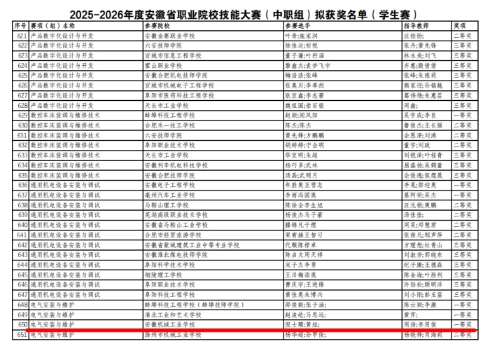 安徽省职业院校技能大赛中职组“电气安装与维护”赛项取得省级一等奖