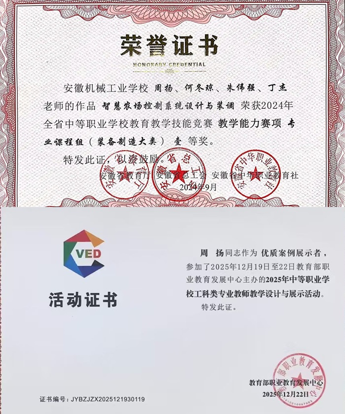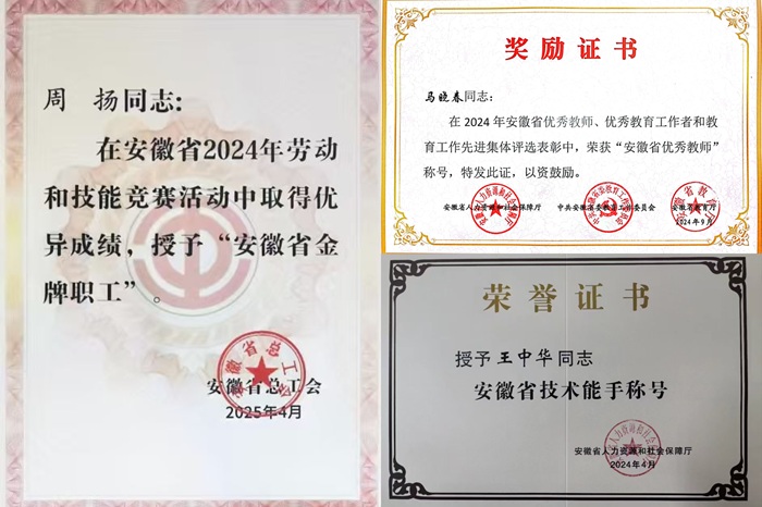教师个人荣誉斩获省级重磅奖项。系部教师综合素养持续提升,1人获评省级金牌职工,1人入选新时代学校名师,1人获评安徽省优秀教师,1人被评为安徽省技术能手,教师行业影响力与专业引领力不断增强。