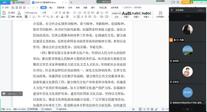12月15日下午,第五党支部组织开展了线上政治学习活动,支部全体党员、入党积极分子,交通运输系部分教师参会学习,会议由支部书记韦静主持。