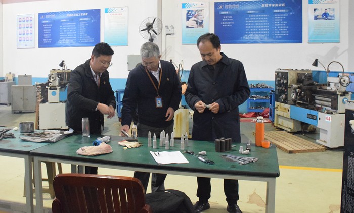 调研中,陈德宝与积极备赛淮南市中职车工技能大赛的学生和实操师傅亲切交谈,细心察看了备赛学生普通车床加工螺纹的训练过程,对他们的学习、教学、备赛等情况关切询问。并结合世界技能大赛参赛经验,分享了职业院校技能人才培养的途径和做法。