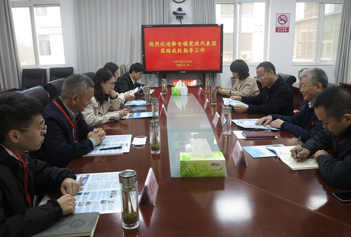 交流座谈会由杨怀鹏主持。座谈时,徐黎代表学校党委领导班子对代表团的到来表示热烈欢迎,详细要介绍了学校的基本情况、发展历程、人才培养、专业建设、师资队伍等方面办学成果,表达了对谢家集区委政府长期以来支持学校办学工作的感谢,特别强调,近年来校企合作取得了丰硕成果,学校将继续发挥教育优势,培养高素质技能人才,愿与新仓镇“政企”两方进一步加强沟通,深入推进校政合作、校企合作,建立长期稳定的合作机制,为企业提供智力支撑、人才支撑,为学校改革发展注入新动力,实现发展共赢。