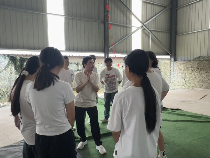 活动当日,阳光明媚,气氛热烈。王教授在开营仪式上作了简短而有力的动员。强调了学生综合素质培养的重要性,指出拓展训练不仅是体能的锻炼,更是对意志、沟通、信任与领导力的全面考验。鼓励同学们放下拘谨、全情投入、互帮互助,在活动中深刻感悟团队精神的真谛,为即将开启的校园生活奠定坚实的基础。