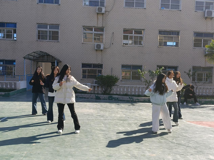 中场休息时,艺术2303班为在场的师生带来了精彩的舞蹈。啦啦队的队员们动作整齐划一,甩动的发丝与利落的舞步相映成趣,跳跃、旋转、队形变换一气呵成,每一个充满力量的动作都精准踩中节拍,瞬间点燃全场热情,师生们纷纷举起手机记录,掌声与欢呼声此起彼伏,为即将开赛的球队注入满满能量。