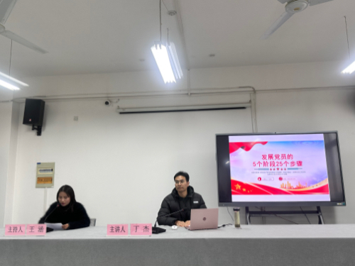 丁杰围绕发展党员工作展开专题讲解。他结合党章及《中国共产党发展党员工作细则》相关规定,以“发展党员的5个阶段25个步骤”为核心脉络,详细解读了从申请入党、入党积极分子确定与培育,到发展对象考察、预备党员接收,再到预备党员教育考察与转正的全流程要求。丁校长的讲解条理清晰、重点突出,既明确了各阶段的具体标准和操作规范,也对入党积极分子的思想觉悟、道德品质、现实表现等提出了明确期望,为大家后续的入党之路指明了方向。