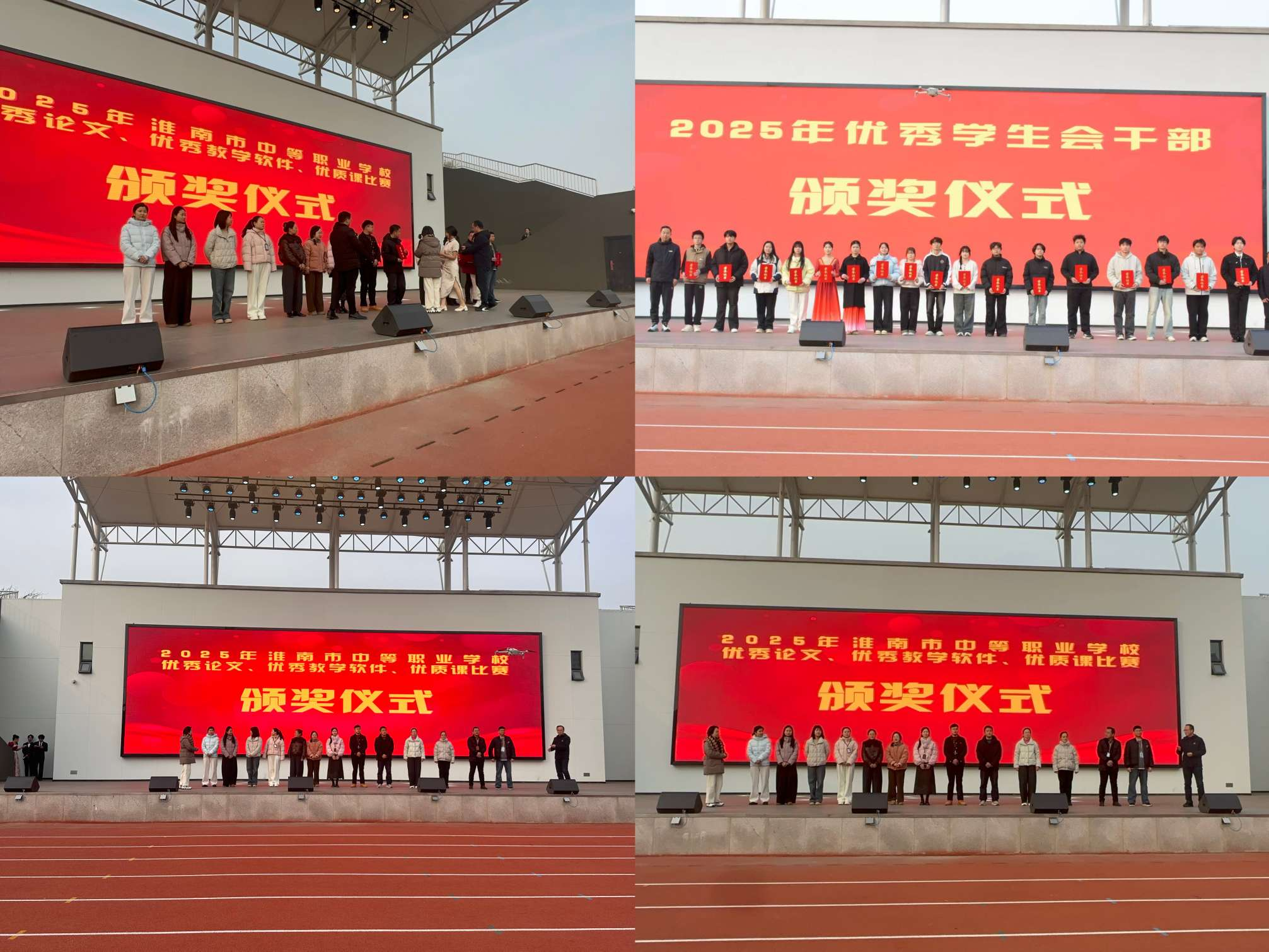汇演期间,隆重的年度表彰环节穿插进行。校领导依次为在优秀论文、优秀教学软件、优质课比赛中斩获荣誉的优秀教育教学工作者,获评“优秀学生会干部”的校级学生组织成员,以及荣获“优秀班干”称号的班级骨干颁发证书。受表彰的师生代表精神抖擞登台领奖,台下掌声阵阵,现场气氛热烈而庄重。