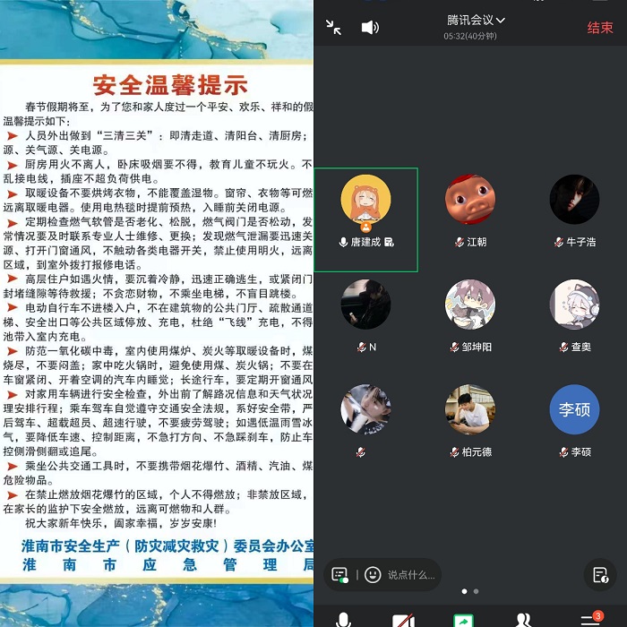 此外,班主任还就禁止燃放烟花爆竹相关规定进行了宣讲,强调了违规燃放的安全隐患和法律责任,引导同学们自觉遵守规定,选择安全、环保的方式欢度假期。班会最后,班主任组织同学们进行安全知识互动问答,同学们积极参与、踊跃发言,进一步巩固了安全知识。