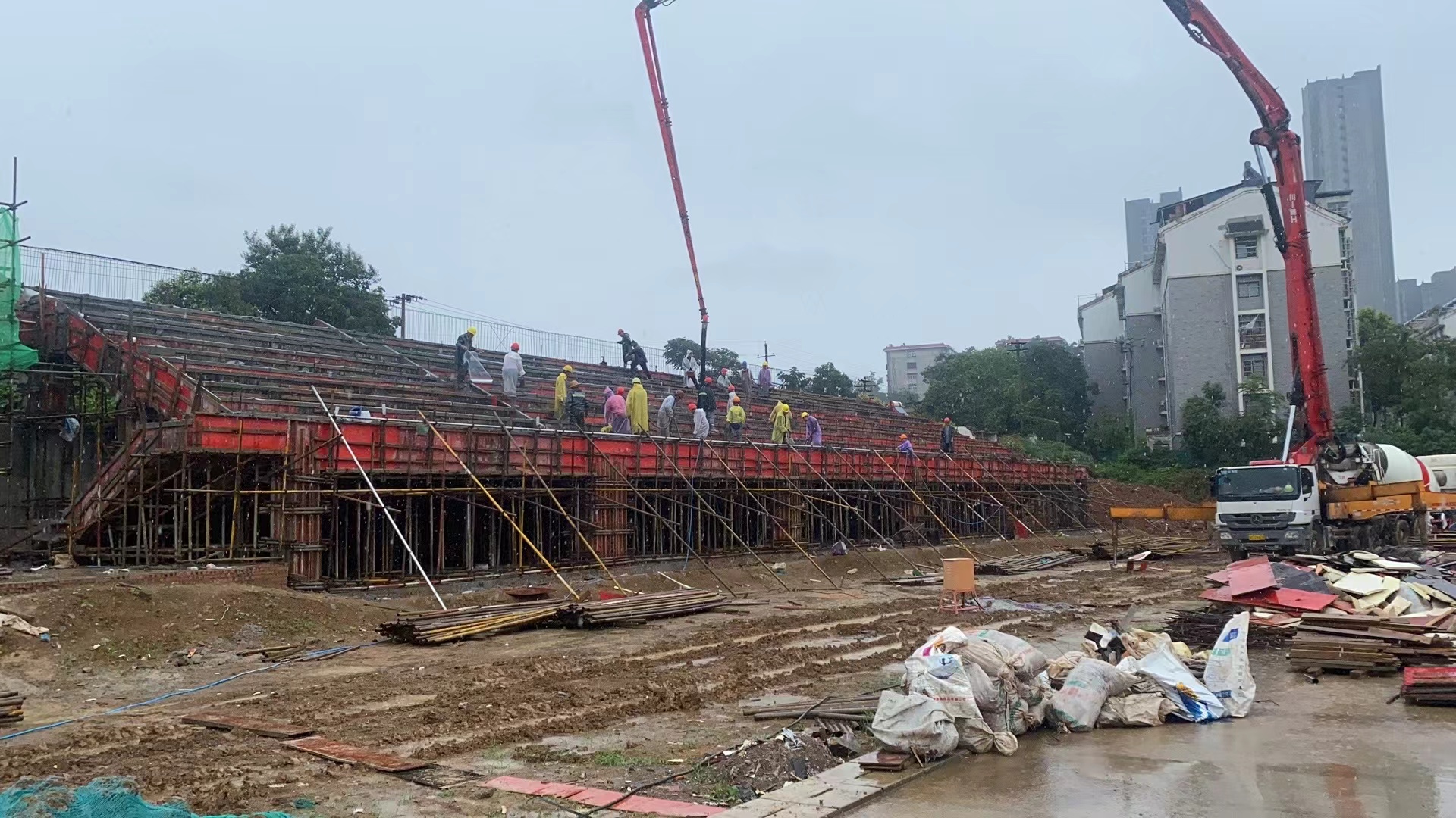 近日,随着学校运动设施建设的不断推进,我校运动场看台混凝土垫层浇筑工作圆满完成,标志着学校运动场建设迈出了重要一步。为了慰问炎炎夏日中坚守岗位、辛勤付出的建设者们。党委委员,副校长丁杰前往施工现场,为一线员工送去了温暖与关怀。